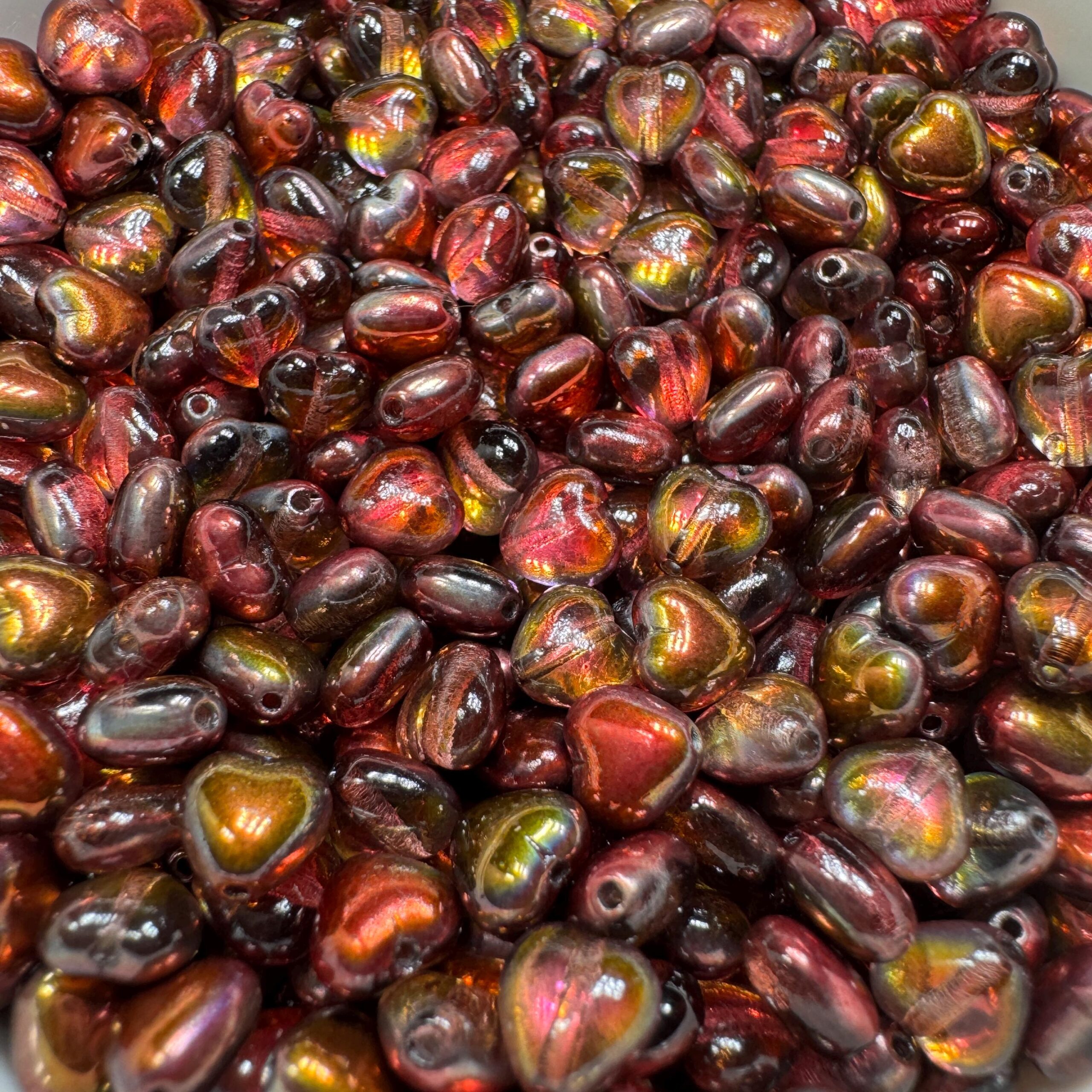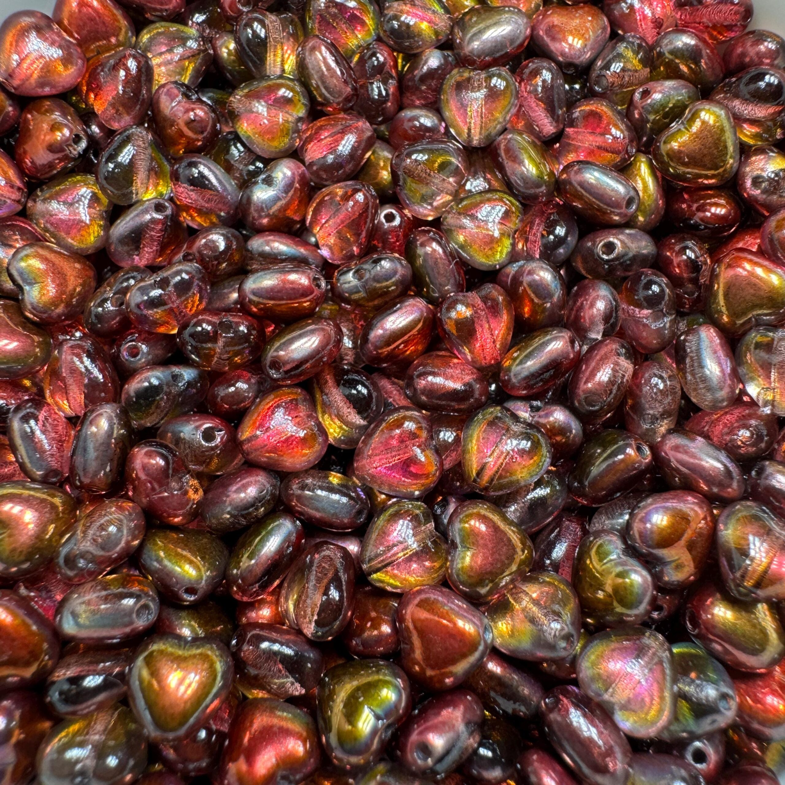 Crystal Etched Magic Wine heart Czech glass bead.